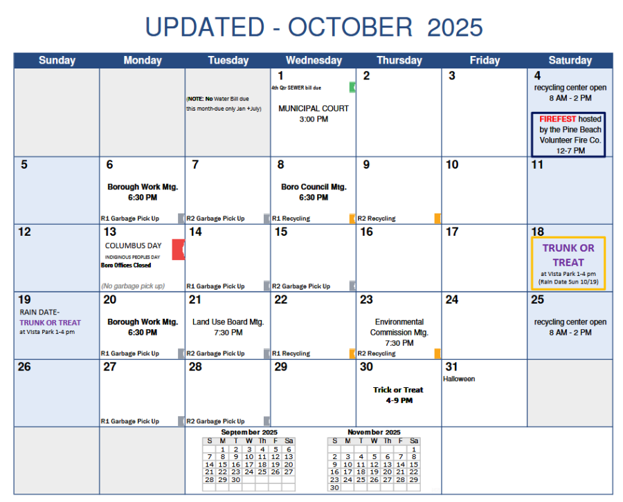 Please feel free to contact Borough Hall at 732-349-6425 or by email cbortko@pinebeachnj.gov